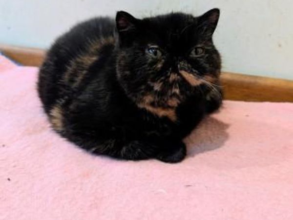 Rey is very extrovert and playful. She has beautiful large orange eyes, and her Tortie pattern is developing beautifully. She's affectionate and confident around other cats and our bouncy Boston Terrier.